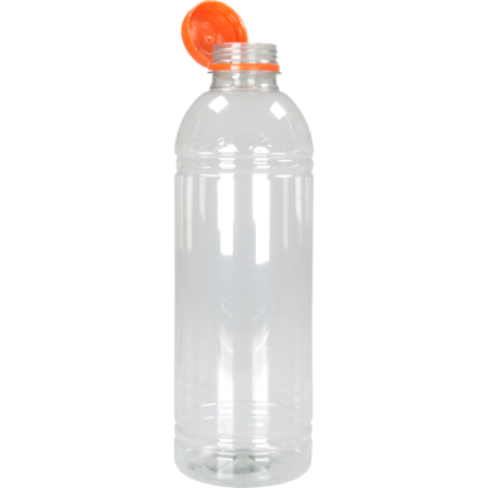 Bottle, pET bottle, Recycled PET, with orange cap, 1000ml, transparent