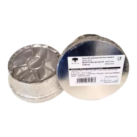 Round Aluminum Disposable Container 1440 ml & Lid; 10 x 10 pieces
