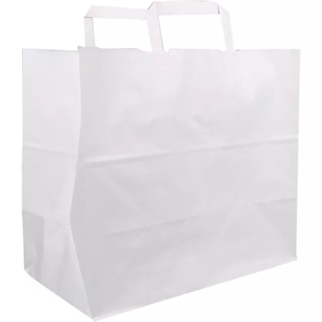 Bag, Kraft, flat paper handle, 32 x 22 x 26cm, snack bag, white, 250 pieces