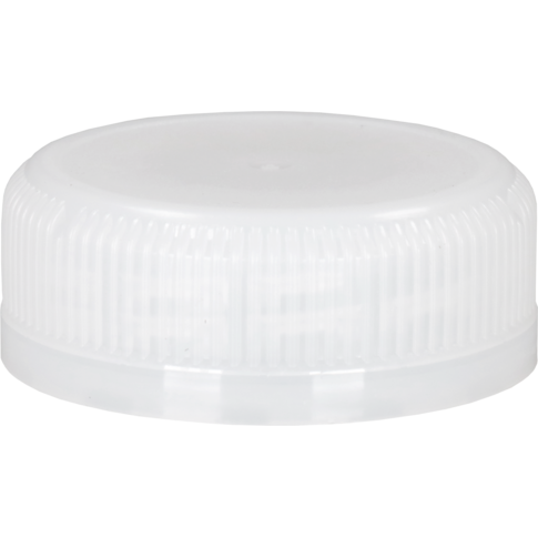 Close your transparent PET bottles full of fruit juice or other chilled drinks securely with these tethered, sealable transparent screw caps.