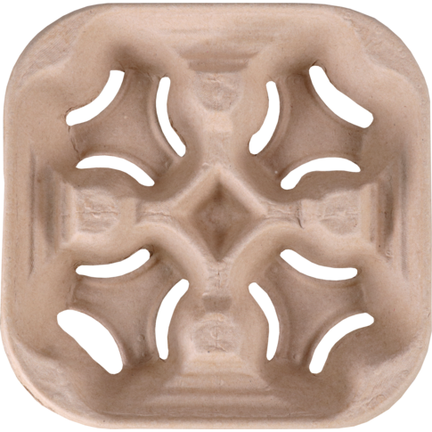 The practical carrying trays are made of paper pulp. This raw material of recycled paper (old newspapers) and cardboard comes exclusively from industrial waste with guaranteed traceability. The natural material is ideal for single use and can be recycled with waste paper afterward. The trays are also compostable in an industrial environment (recognizable by the seedling logo on the packaging).