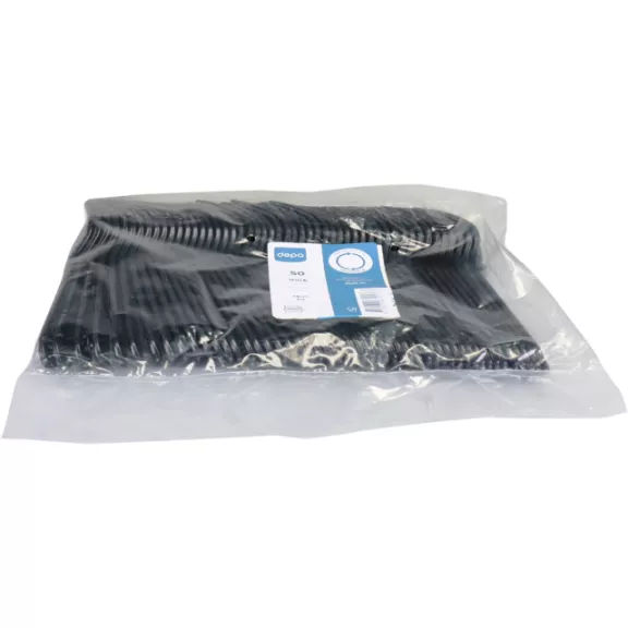 The forks are available in both black and white. Knives and spoons in the same material and in both black and white are also available. Chose the color that best reflects the atmosphere of your company and enhances the presentation of your dishes. All the cutlery is sold in bags containing 50 pieces.